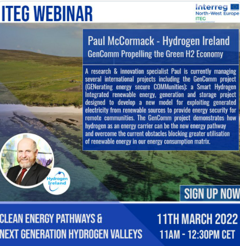Hydrogen Ireland Board Member Paul McCormack will be speaking at the ITEG webinar on March 11, 2022. Paul will speak on the topic of ‘GenComm Propelling the Green H2 Economy’. The event will look at exemplar hydrogen valleys in Europe and how clean energy pathways can contribute to the development of the next generation of hydrogen valleys.