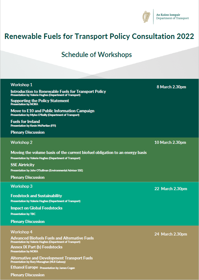 Renewable Fuel for Transport Policy Consultation 2022 Schedule