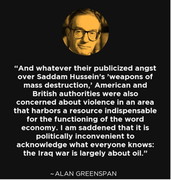 It is and will be the poorest people who are and will suffer the most from all the crises we face. We need to develop policies to achieve for climate and environmental justice abroad and at home. The vulnerable and marginalised are the most affected by climate change, air and water pollution and energy poverty. Communities that are the least represented or not represented in places of power and positions to influence policies are the most affected by pollution, extraction and other negative ‘externalities’ of the modern globalised and globalising capitalist system. We need a legal framework with environmental rights to protect everyone today and in the future, develop new ways of thinking about and changing the economy beyond economic growth, and to also overcome the tendency not to connect the climate crisis to the cost-of-living crisis or the housing crisis.  For example, climate change is connected to our dependence on imported and expensive fossil fuels (the main driver of climate breakdown and geopolitical wars such as the 2003 Iraq war, which even leading members of the pro-capitalist class, such as Alan Greenspan, former Head of the US Federal Reserve has admitted –see below), and how poor housing insulation leads to fuel poverty.  The latter made much worse for example in Ireland, because of the overdependence of the region on oil for space heating (a volatile commodity which can quickly escalate in price as we’re now seeking due Russian invasion and war in Ukraine), coupled with a very badly insulated housing stock.